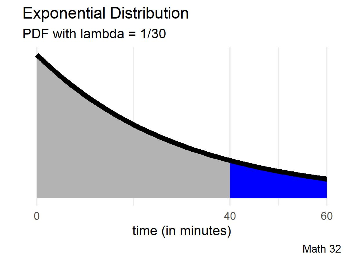- Given that you have already waited 32 minutes to see the ghost, what is the probability that you will have to wait at least another 10 minutes?
